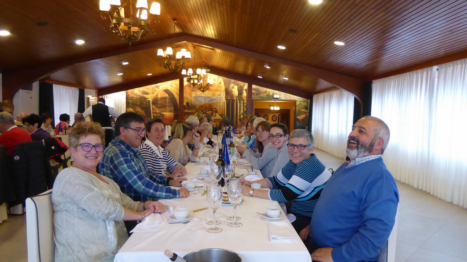 Disfrutando de la comida en Bores con el rehabilitado palacio de Orejuz |